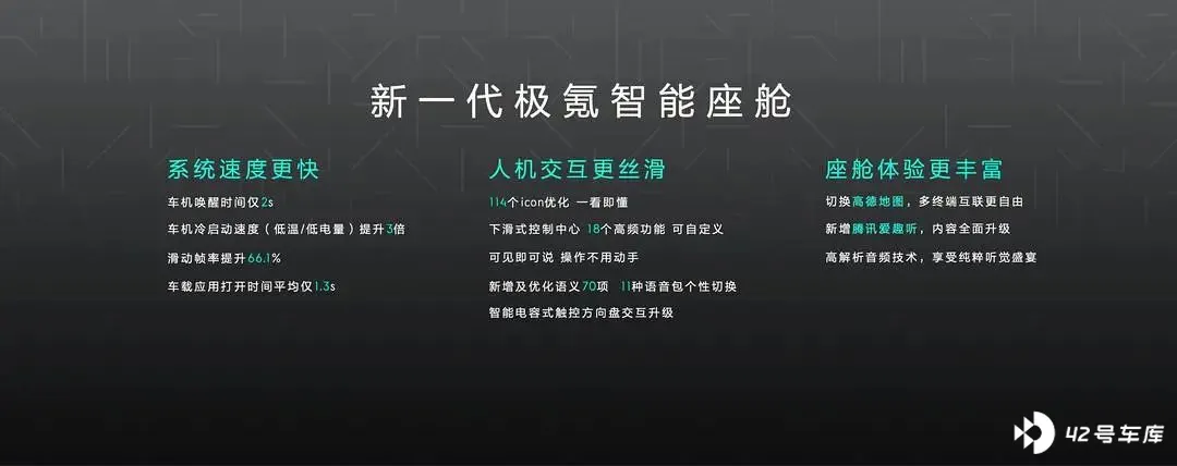 可以看出这次极氪 001 在驱动、座舱、辅助驾驶方面都有很大的提升和进步。