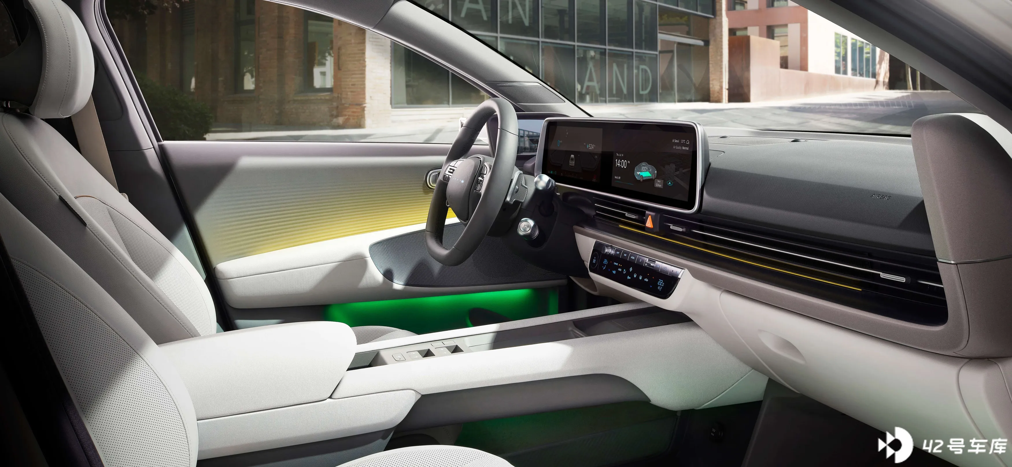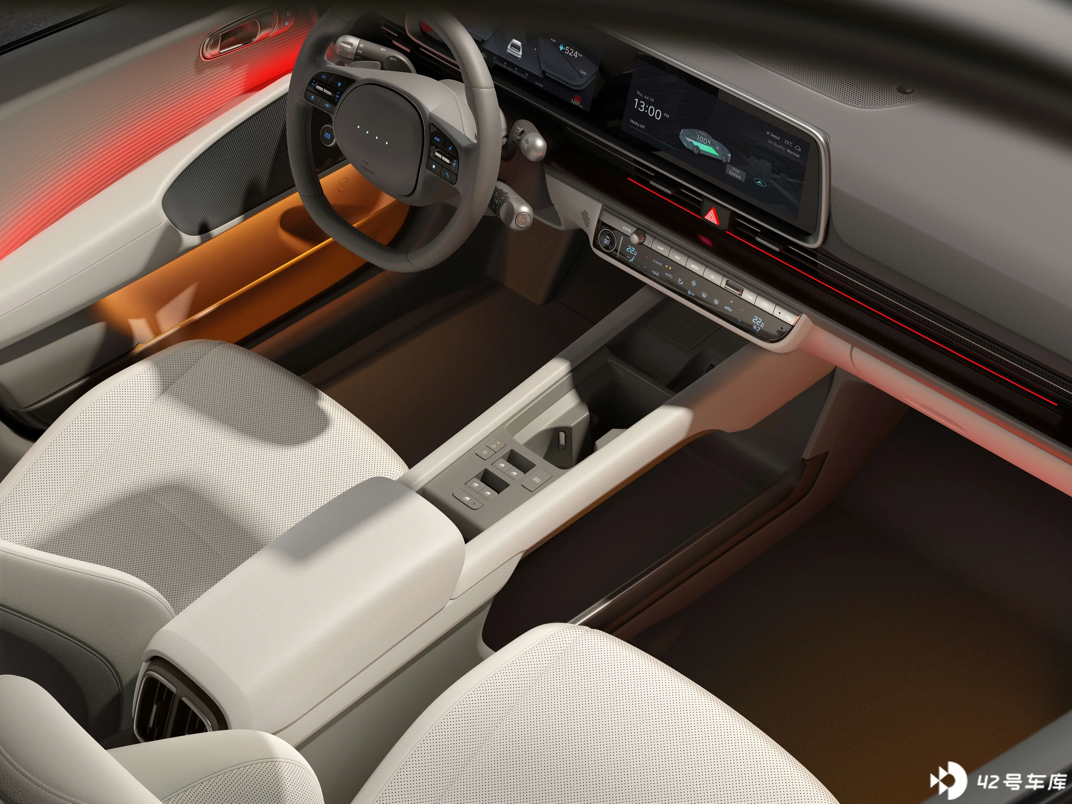 相比特立独行的外观设计,IONIQ 6 的内饰能看出传统品牌的一些「坚守」:仍然保留了比较多的实体按键。双 12 寸的中央大屏支持 Carplay 和安卓 Auto,功能和国内新势力比比较基础,但实体按键的加入起码让日常使用不会出现问题。