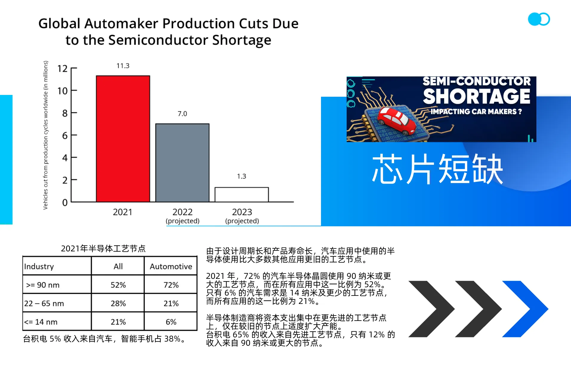 2) 芯片企业的角度来看,供应层面会在 2022 年进入缓解期,但是芯片的产能确实在 2023 年基本都被锁定了;