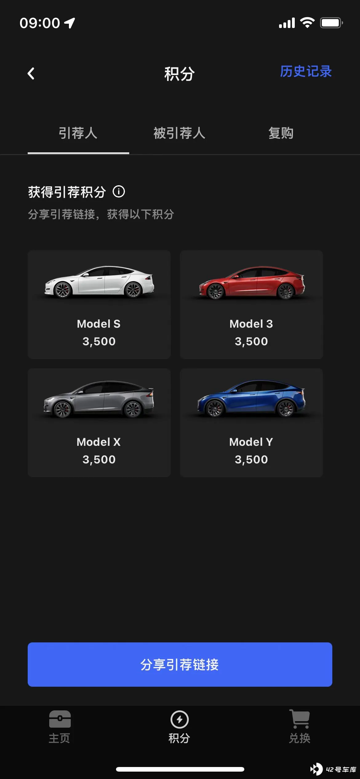 此外,特斯拉引荐政策重新上线,用户成功推荐 1 名好友购买特斯拉后,两人均可以获取积分,兑换礼品,目前特斯拉 App 中显示,无论是购买 Model 3/Y 还是 Model S/X 引荐积分均为 3,500 积分。