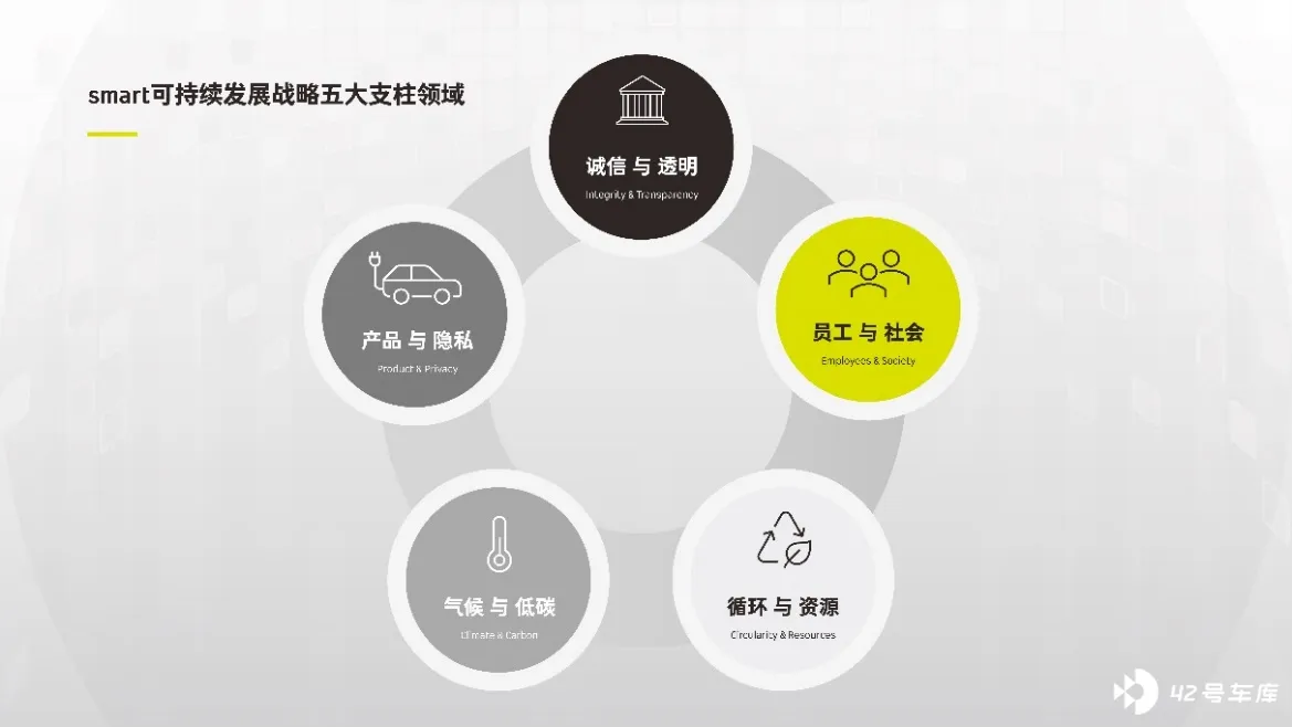 smart 现已正式启动「smart」可持续发展行动计划,契合 smart 可持续发展战略五大支柱领域,在「诚信透明、创新智行、净零使命、责任采购、共创未来」五个层面,协同推进一系列短、中、长期创新举措。