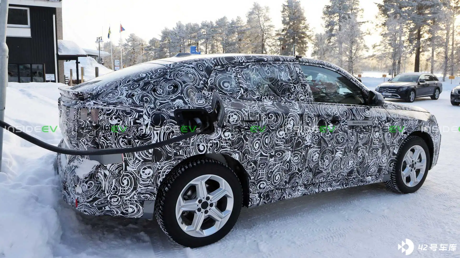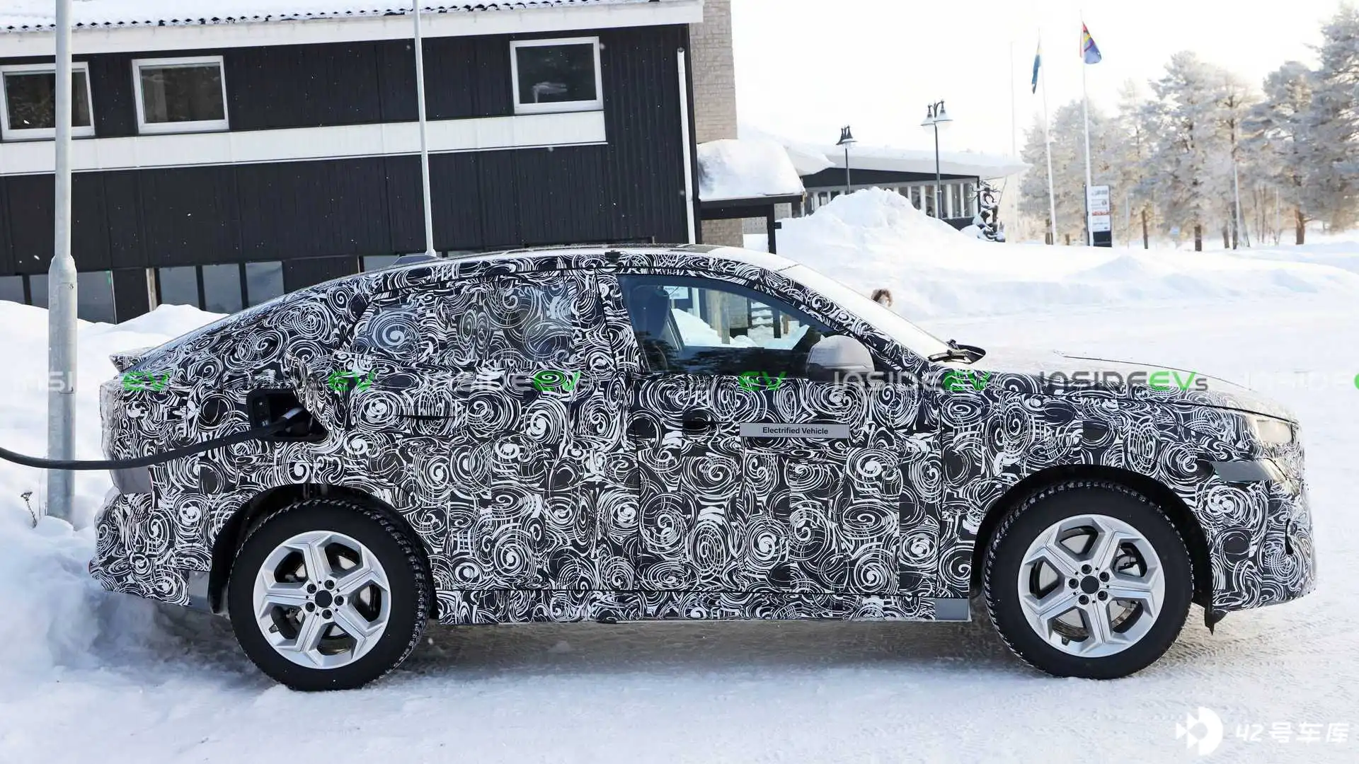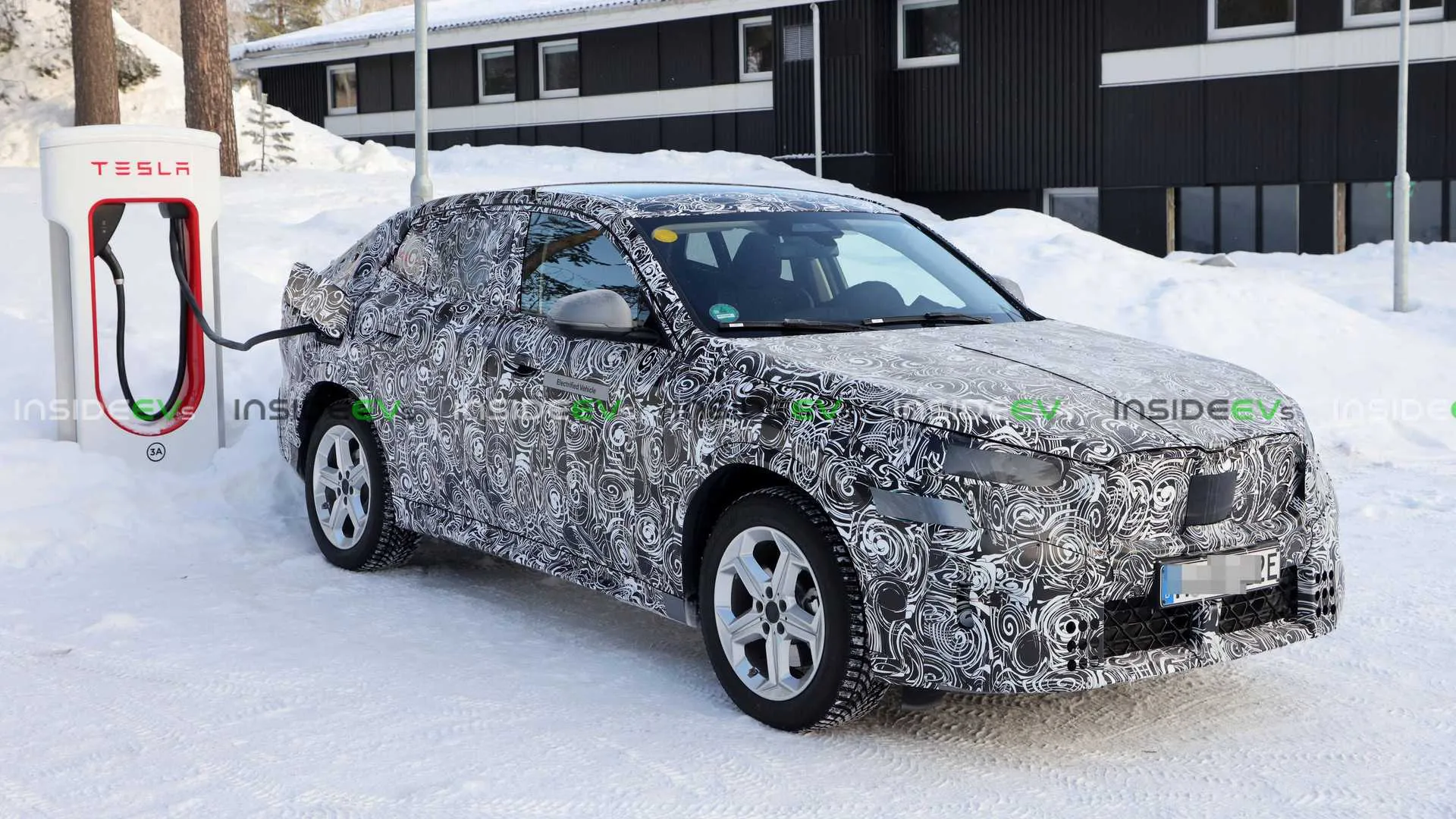 近日宝马 iX2 的路试谍照被外媒曝光,新车贴着重度伪装贴纸正在特斯拉超充补能,这台宝马 iX2 正处原型车的冬测阶段。