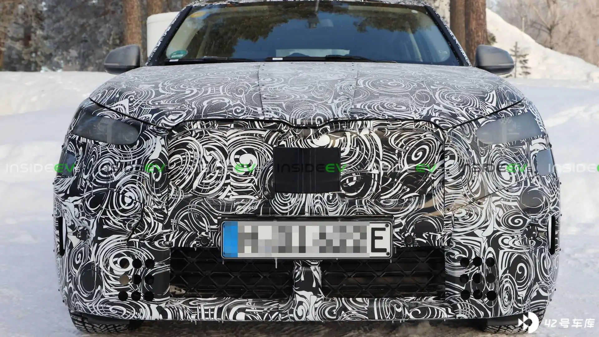 此次曝光的宝马 iX2 相较新款在售的宝马 X2(ULK 平台)具有非常大的不同。设计语言与刚发布不久的新款 X1/iX1 非常类似,车头部分加大了双肾中网的面积,与 iX3、iX1 一样采用封闭形式,中间集成了一颗毫米波雷达,散热处于放在了前杠底部。