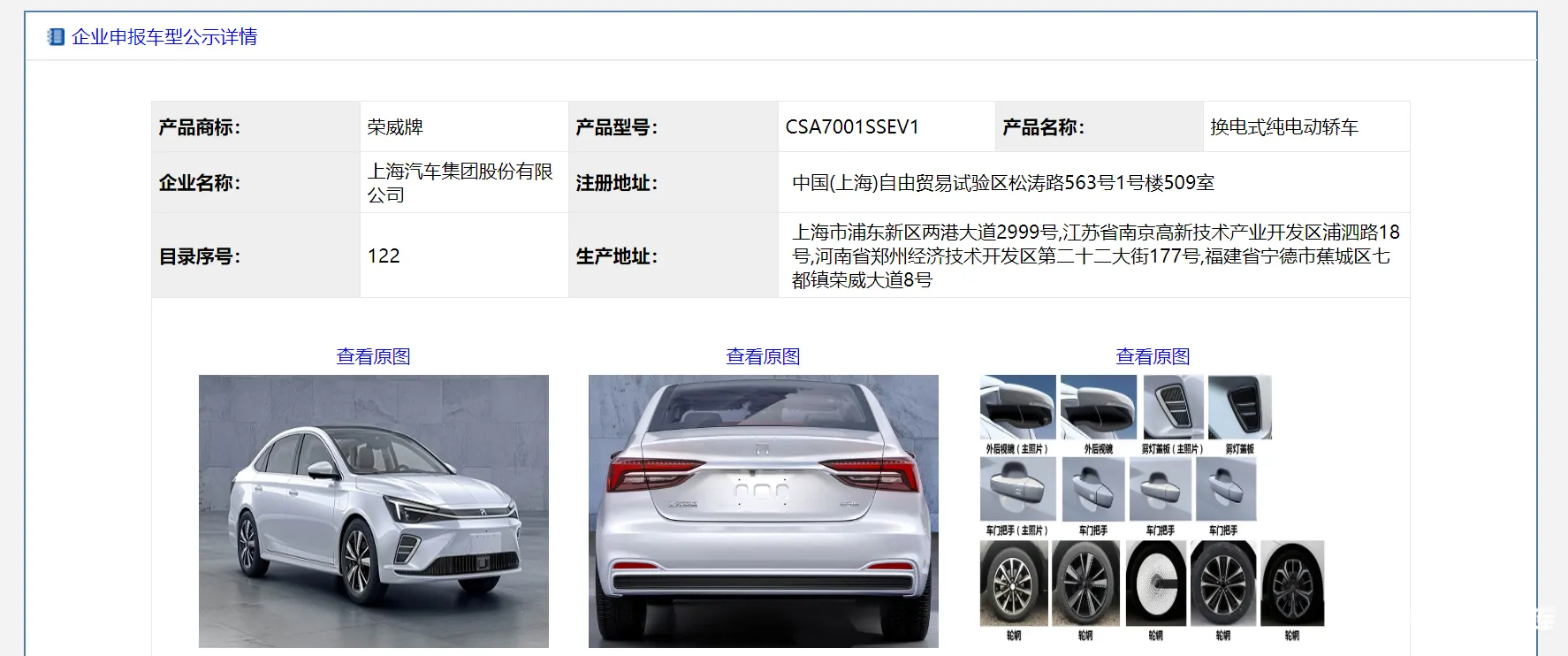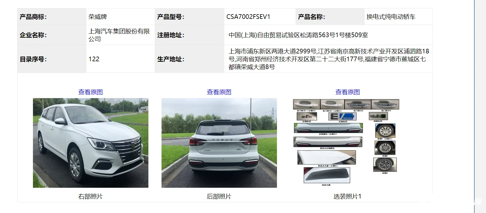 换电实锤,荣威 Ei5、ER6 上工信部目录