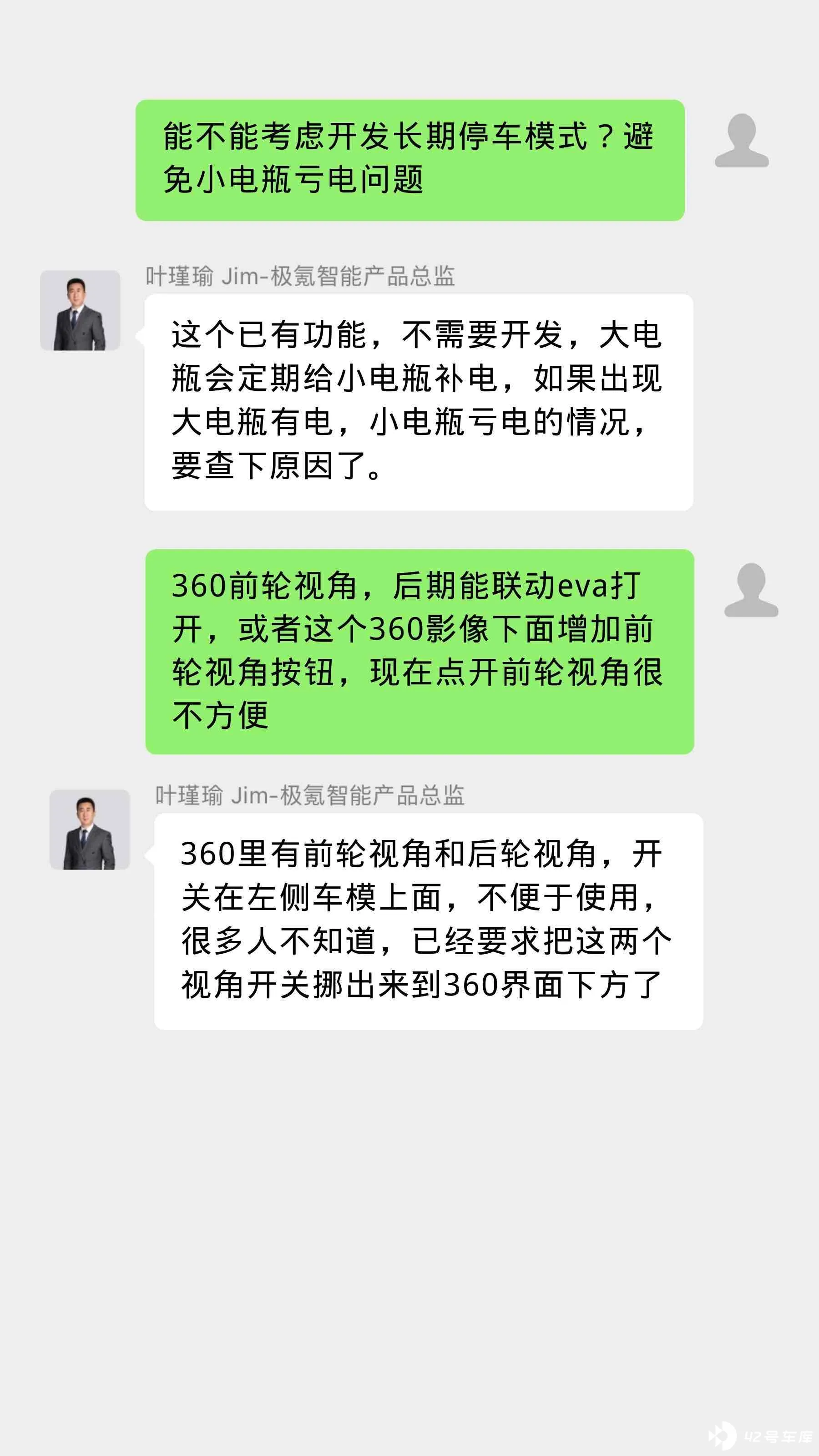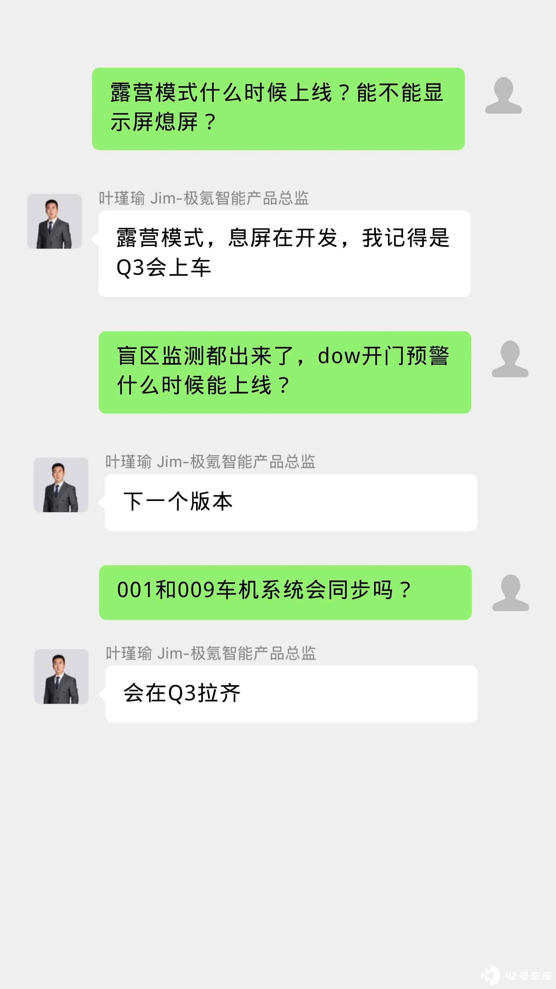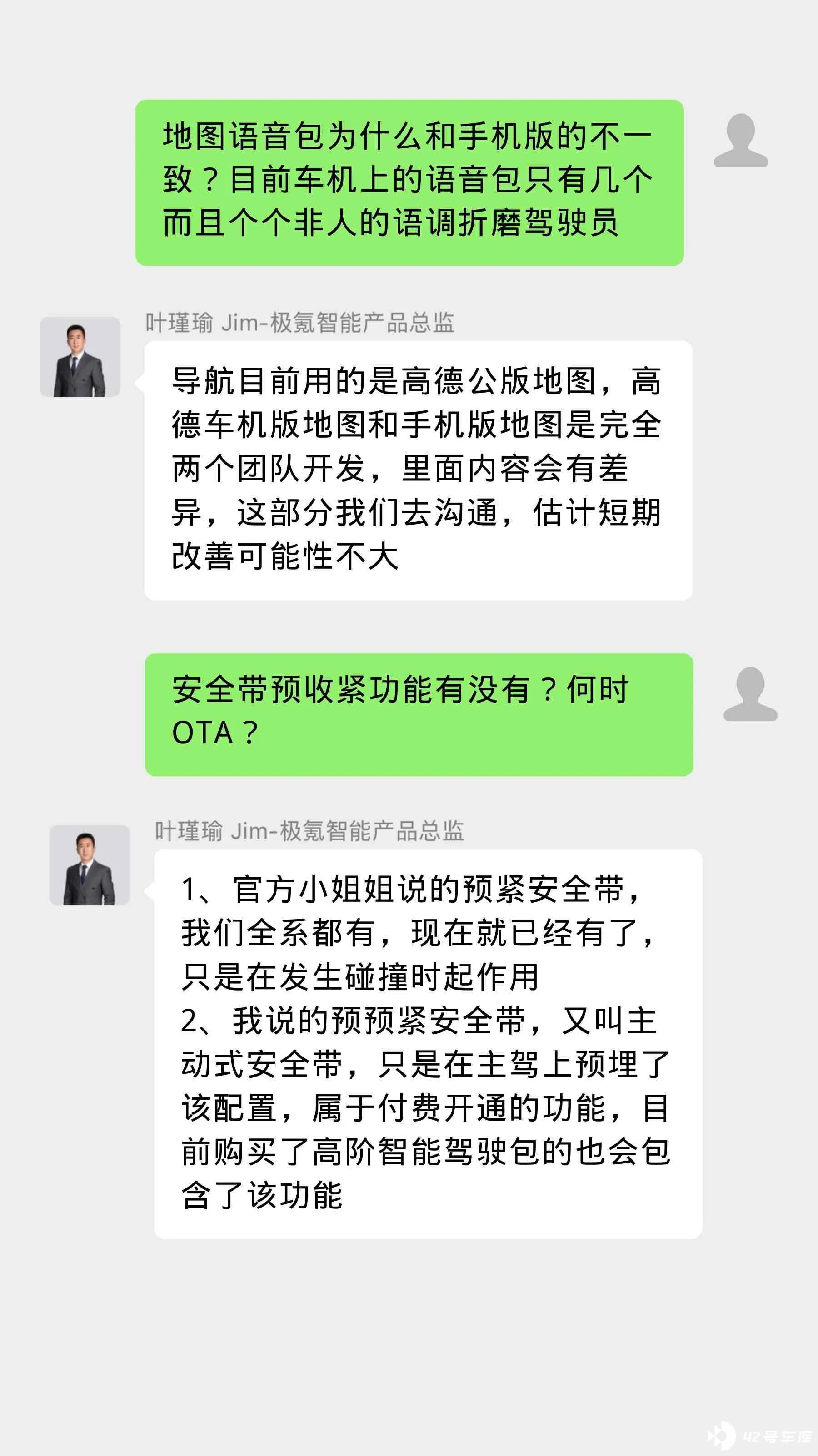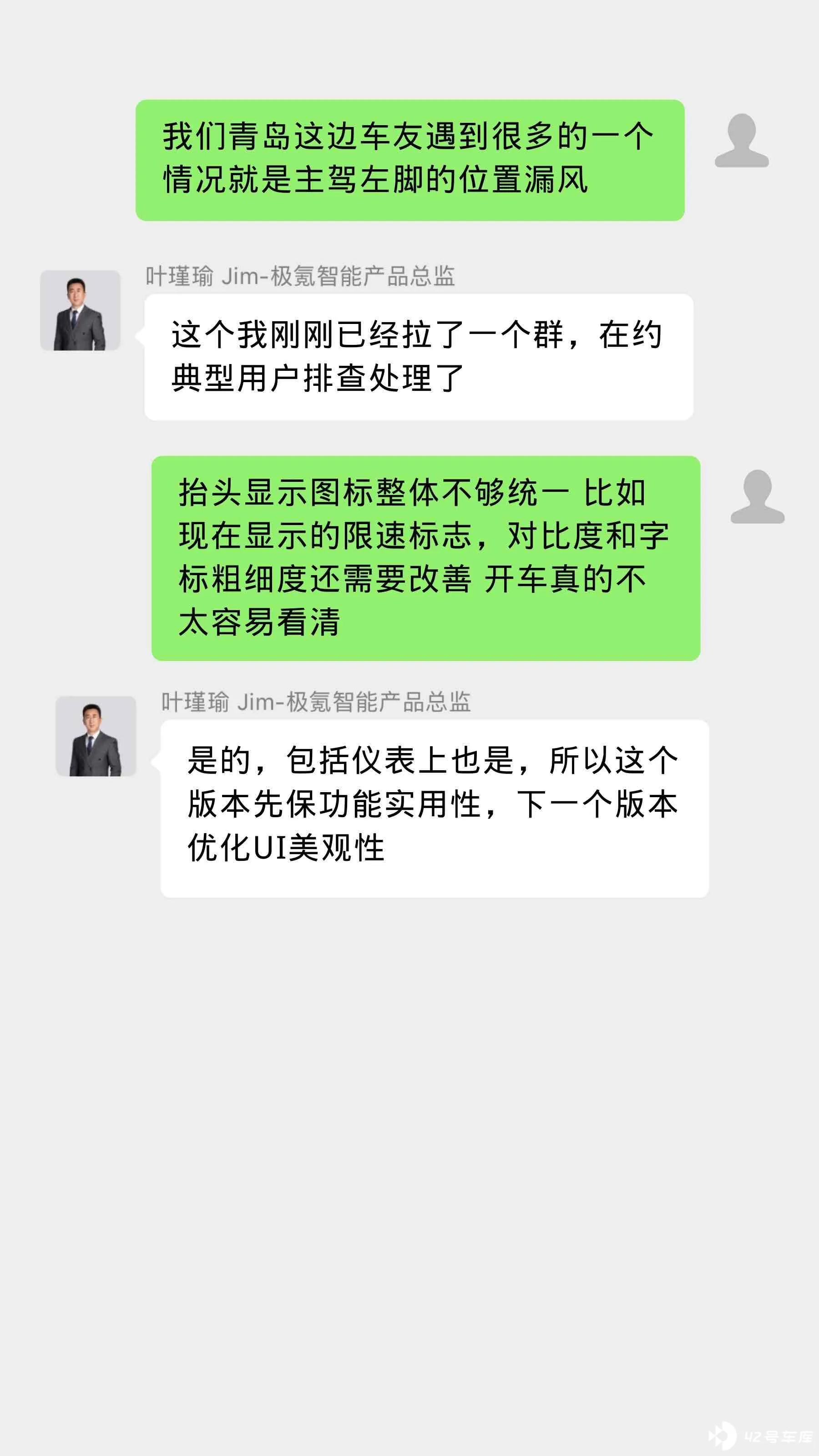 首先,特别感谢42号车库把极氪的产品总监拉进车友群对线。