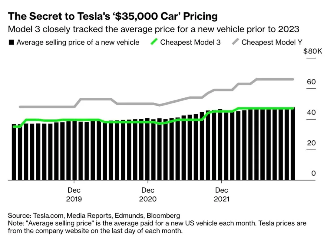 多年来,特斯拉最便宜的车型价格与美国消费者购买新车的平均价格密切相关。 Model 3 的起价与当时购买新车的平均价格相差仅约 300 美元 。