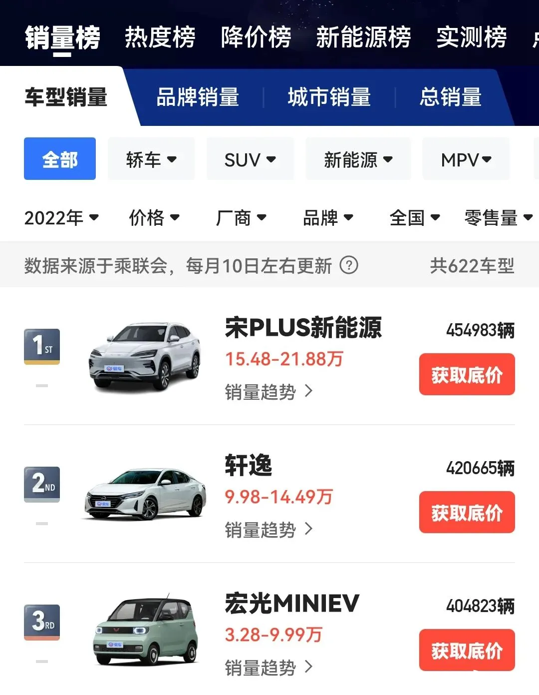 宋 PLUS 在 15-20 万元紧凑型 SUV 市场持续热销后,比亚迪不仅仅是新能源汽车技术引领者,而且成为全球的新能源车销冠。 即便是论总体市场,从乘联会公布的数据来看,今年以来,比亚迪也超越南北大众,成为整个车市的销量冠军。