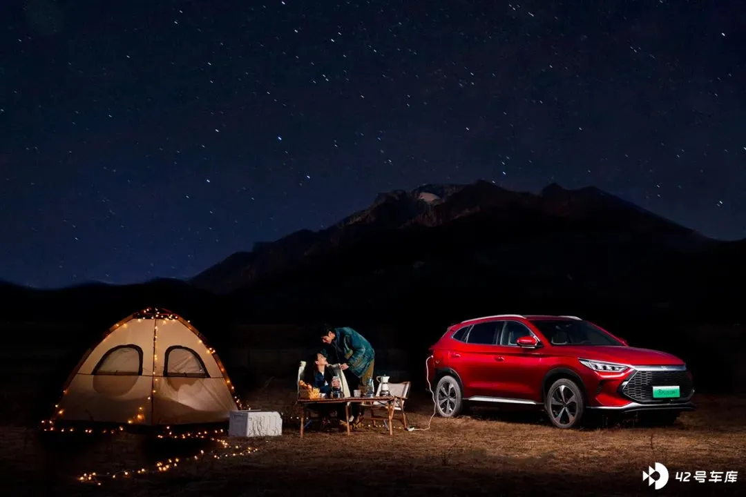 此外, 比亚迪宋 PLUS 还提供了外放电功能 ,令车主在外出露营时,直接用车载电池包放出的 220V 交流电,带动电烤盘等电器,制作餐食,既方便又环保。