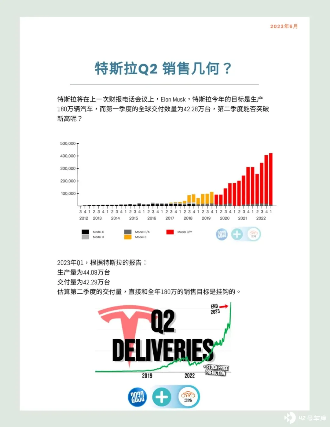 在最近一次特斯拉财报电话会议上,Elon Musk宣布今年的目标是生产180万辆汽车。而根据2023年第一季度的报告数据显示,特斯拉的全球交付数量为42.29万台。那么,第二季度是否能够实现新的交付纪录呢?