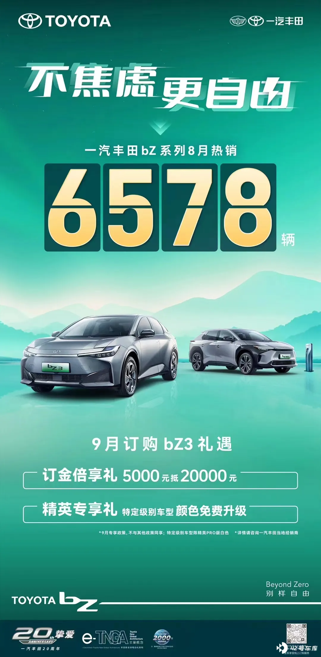 合资品牌新能源突围这一趋势,因为一汽丰田 bZ 系列 8 月销量海报,正在变得明显。