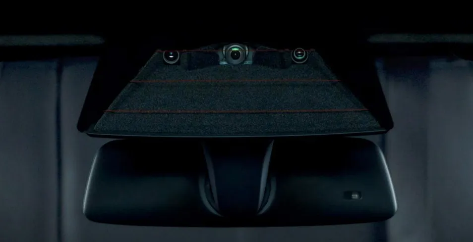 由于单目和双目都存在某些缺陷,因此广泛应用于无人驾驶的摄像机方案为三目摄像机。三目摄像机其实就是三个不同焦距单目摄像机的组合。下图为特斯拉 AutoPilot 2.0 安装在挡风玻璃下方的三目摄像机。