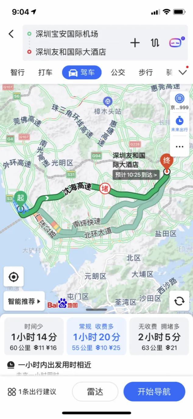 深圳也是一个很大的城市,我们从宝安机场摆渡到岚图的活动地区 - 大运体育中心,不堵车的话也要开 1 小时 6 分钟,而且基本都是收费的高速路 - 足足有 56 公里。