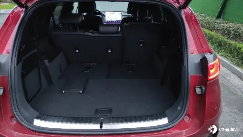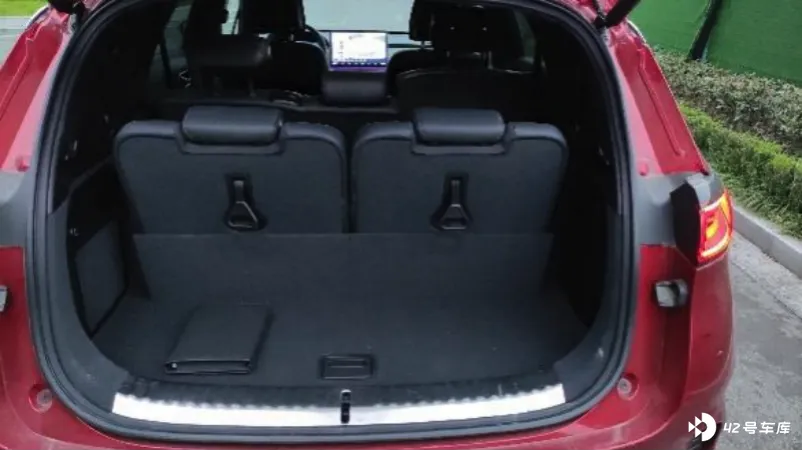 这种七座的 SUV,第三排的使用率都不算高,给留的空间也小,我坐进去很紧凑。大部分的场景下应该是放到的状态,所以第三排座椅在放倒后,后备箱是纯平的,空间一下子很大。