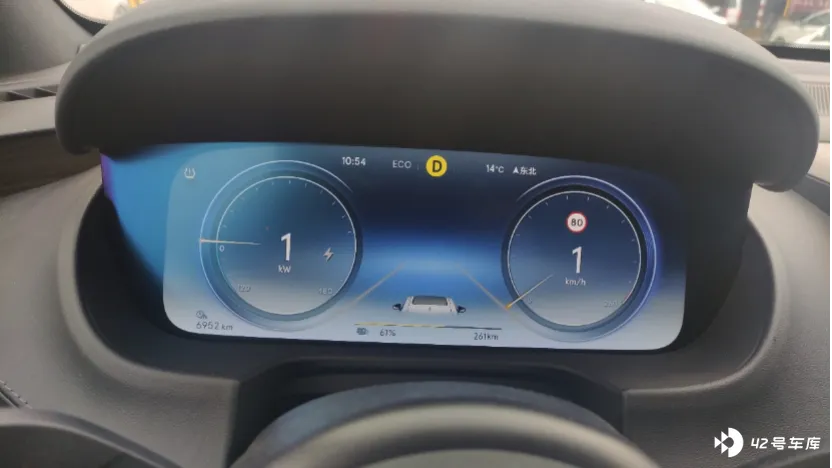 数字仪表左侧显示充/方电状态,右侧显示瞬时速度,屏幕内容显示的详细而不乱,这点要给好评。