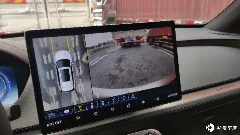 360 环视摄像头很清晰,我最喜欢用的功能,省去不断的从后视镜判断汽车位置这一步骤,但是开启这个功能要把整个娱乐屏占据了,其实把它放在汽车仪表上会更好,也不用占用娱乐屏的位置。