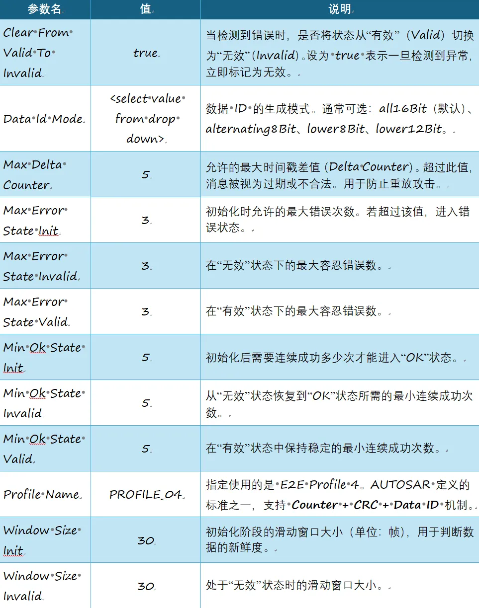 4. 计数器溢出处理: E2E 计数器(如 16 位计数器)溢出后的处理逻辑 —— 当计数器从 65535(最大值)溢出到 0 时,接收端需识别为 「正常循环」,而非 「计数器跳号异常」,需在配置中启用 「溢出允许」 开关。