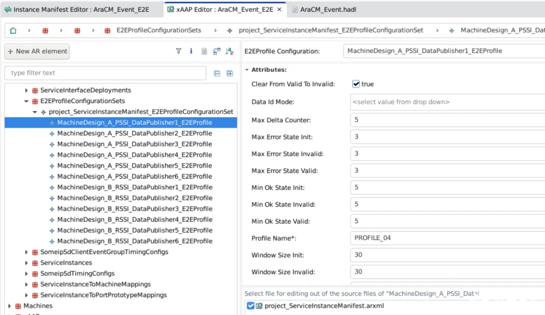 E2E 保护的部署并不复杂,借助 AUTOSAR 工具(如 ISOLAR-VRTE)的 「[COM] Instance Manifest Editor」,几步就能完成: