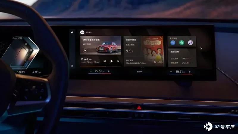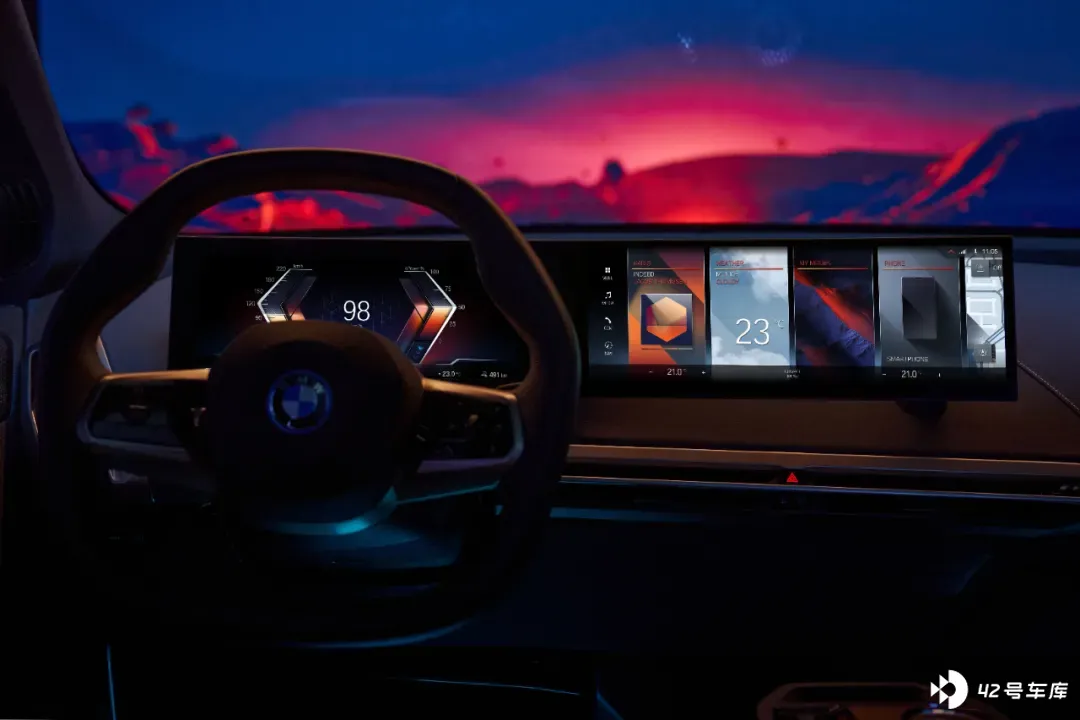 创新 BMW iX 搭载的一体式悬浮曲面屏是面向驾驶员视角的
