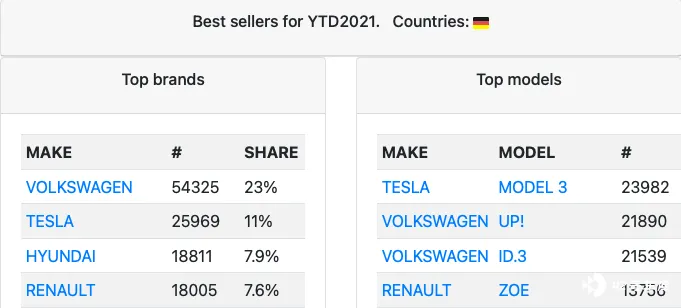 同时,特斯拉 Model 3 目前也成为德国今年销量最佳的电动车,23,982 台的销量已经超过了连续畅销的大众 UP!以及 ID. 3。9 月销量甚至把第二名的大众 ID. 3 远抛在身后,形成了 4,134 台的极大差距。