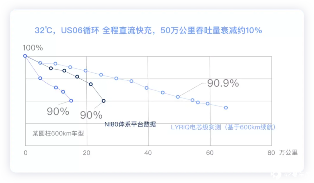 ● 电池正极材料采用原位涂层比原有的 NCM811 热稳定性提升 10%,化学体系是三元正极配高容量石墨负极(355mAh/g);