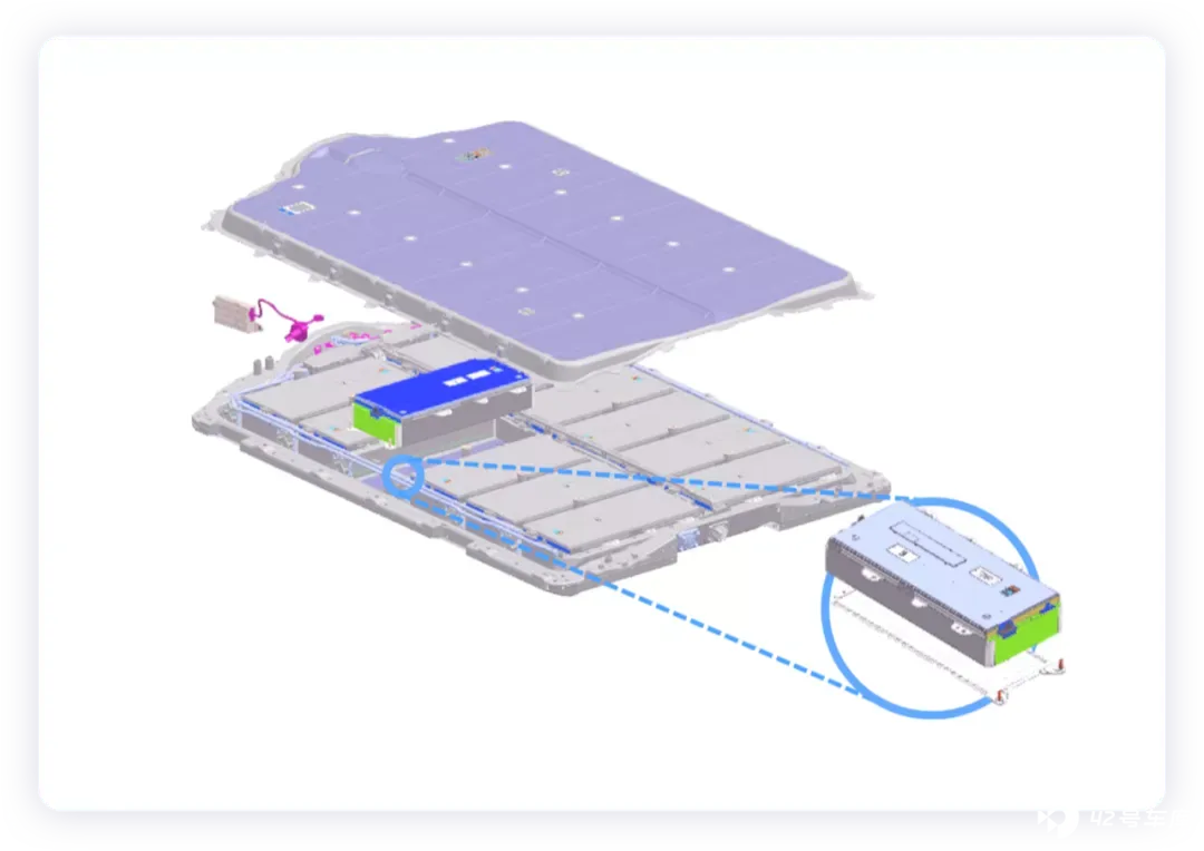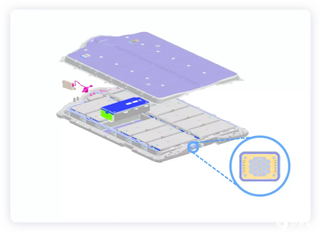 ● 热管理层面为每个模组都配置了集成式独立液冷板。电池包内部高压元器件具备在电芯热失控后防止拉弧设计。