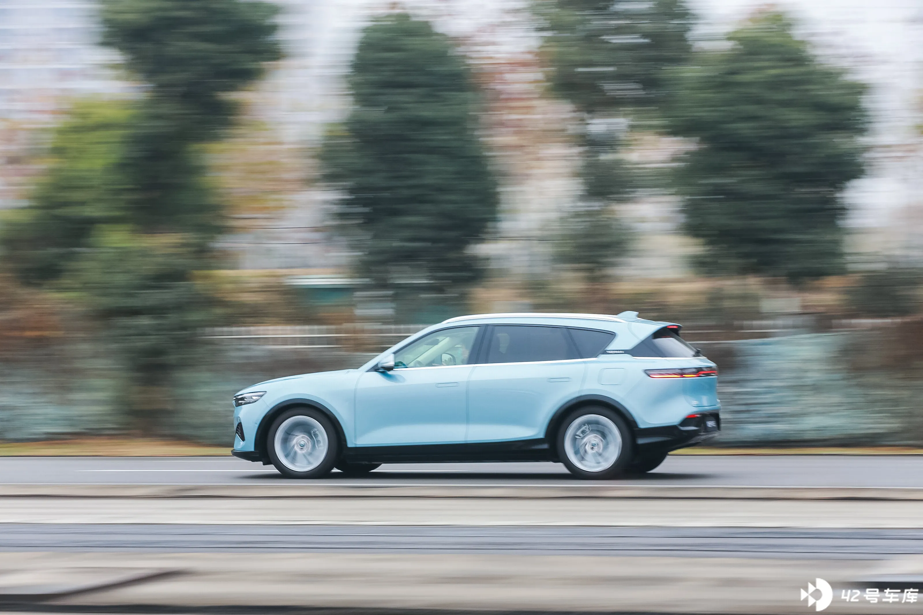 增程版车型在 100 km/h 后依旧可以保持非常不错的加速势头,但换到纯电车型上可以感受到超过 100 km/h 后的再加速能力要稍逊色于增程版车型,这可能与纯电版车型自重较大有关。