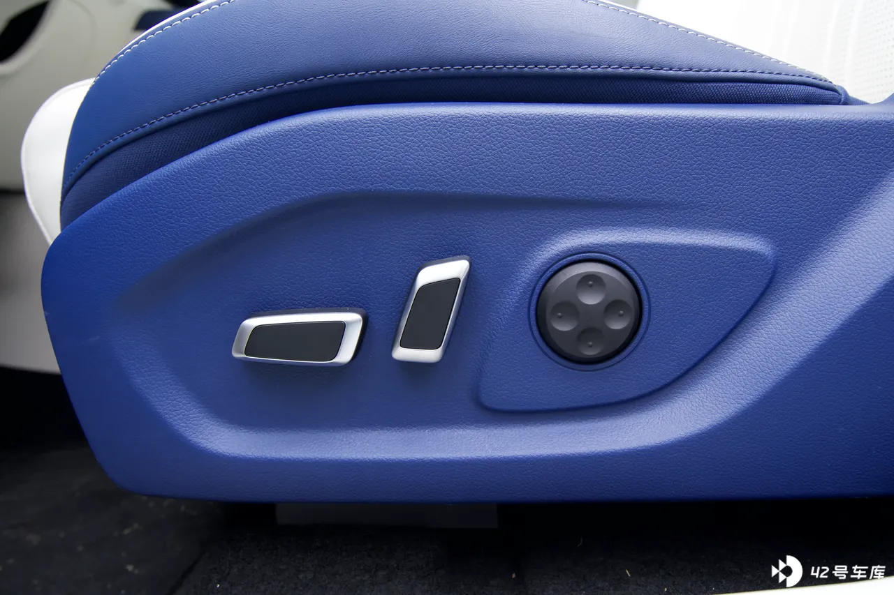 座椅的通风、加热、按摩一应俱全,支持 12 向电动调节,整体承托性不错。头枕角度也可以有效支撑住头部,舒适性满分。