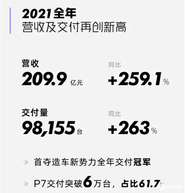 2022 年 1 月总交付量 12,922 辆,同比增长115%,包括 6,707 辆 P7、4,029 辆 P5 和 2,186 辆 G3 系列;
