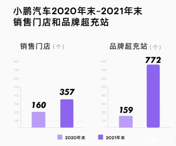 截至 2021 年 12 月 31 日,小鹏汽车品牌超级充电站扩展至772座,覆盖中国 308 个城市;