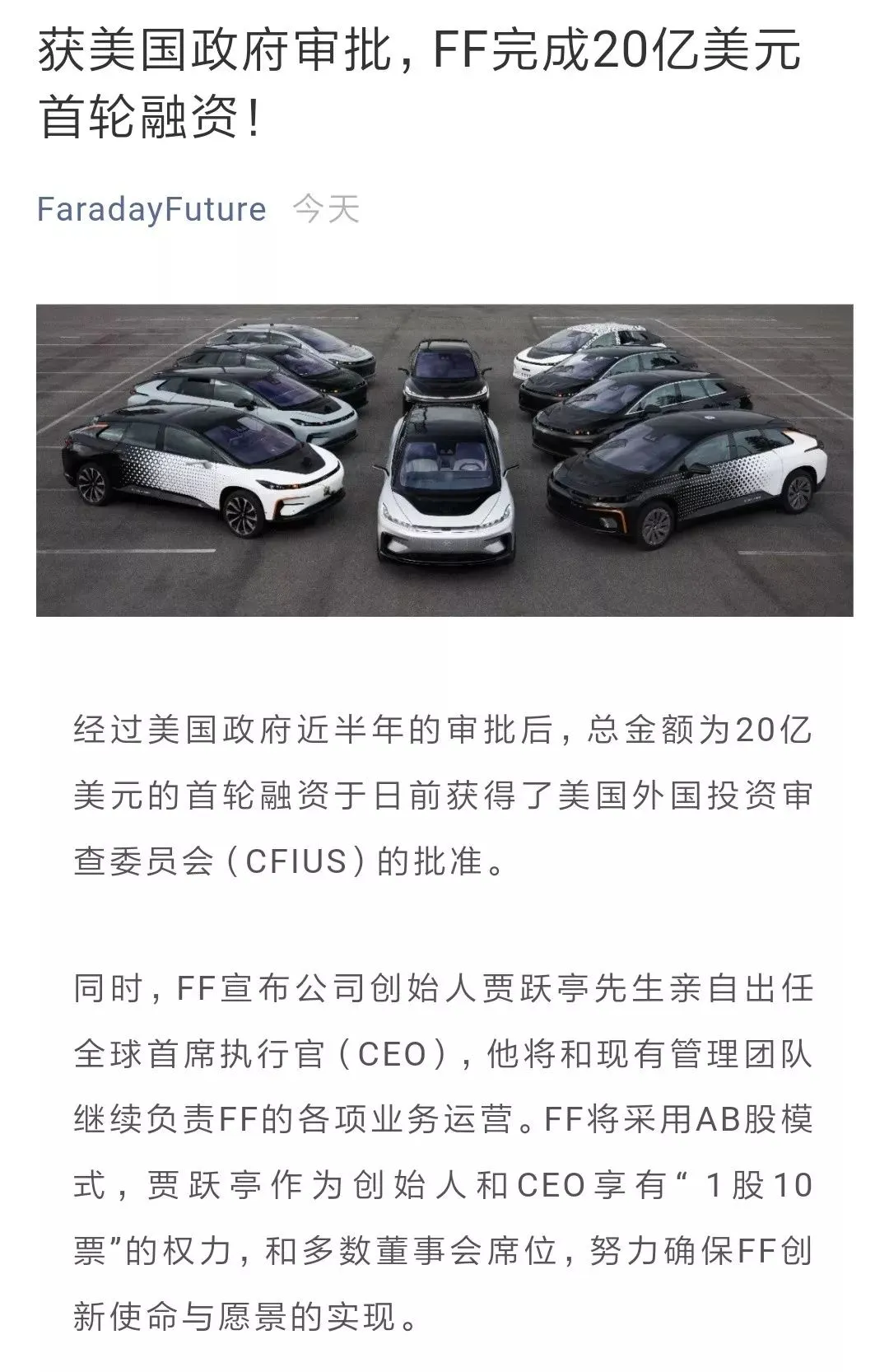 或许我们需要更深入的了解这笔投资的来龙去脉。之前官方的说法是「FF 完成 20 亿美元首轮融资」,20 亿美元分为三步走: