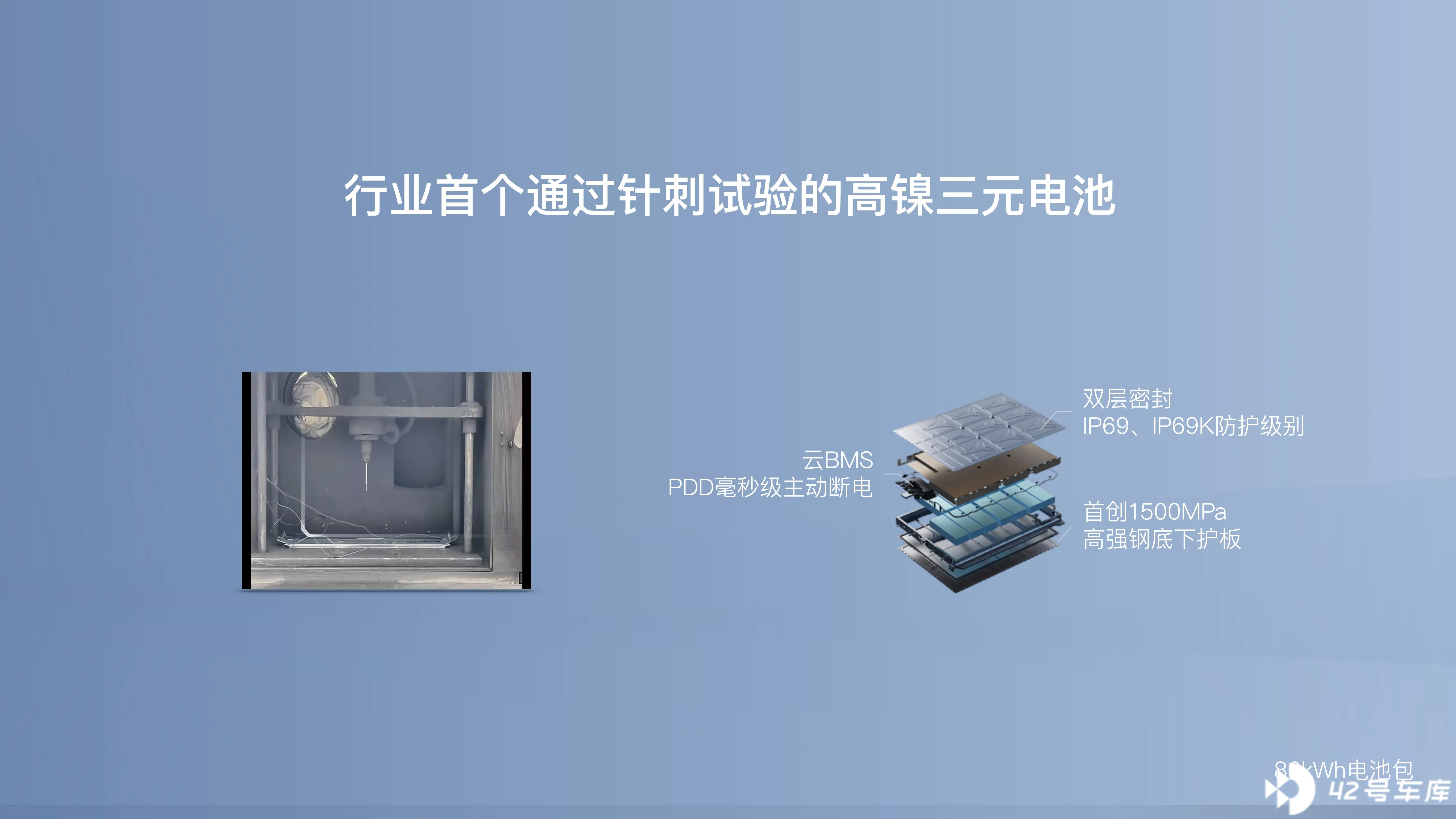 在安全方面,主要有高强度的车身结构 + 从电芯到 BMS 到电池 Pack 的整体安全措施 + 主动安全。