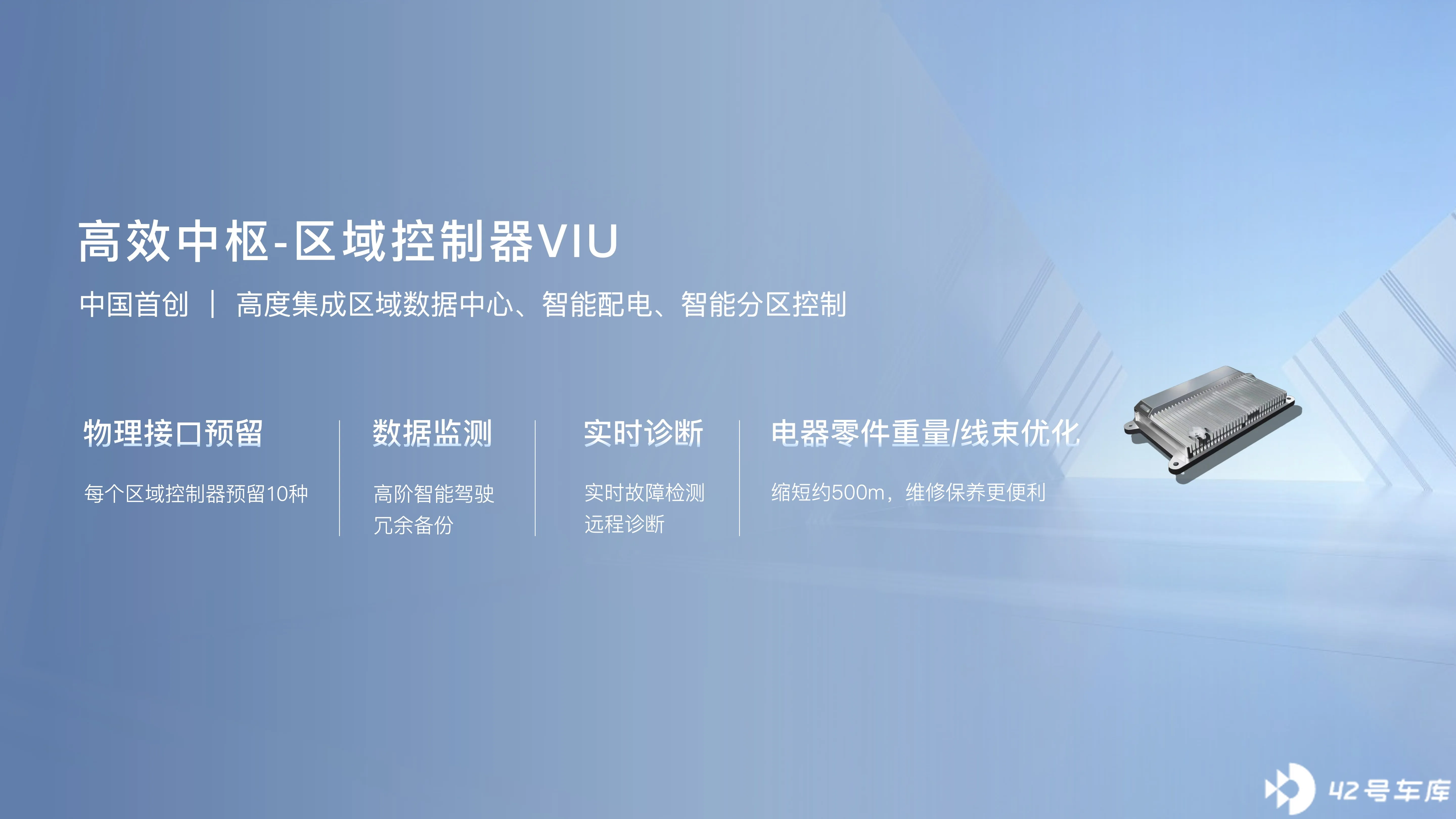 域控制器 VIU,将各类零件集成标准化。可降低维修保养的成本,未来也可以接入更高阶的辅助驾驶硬件设别等。