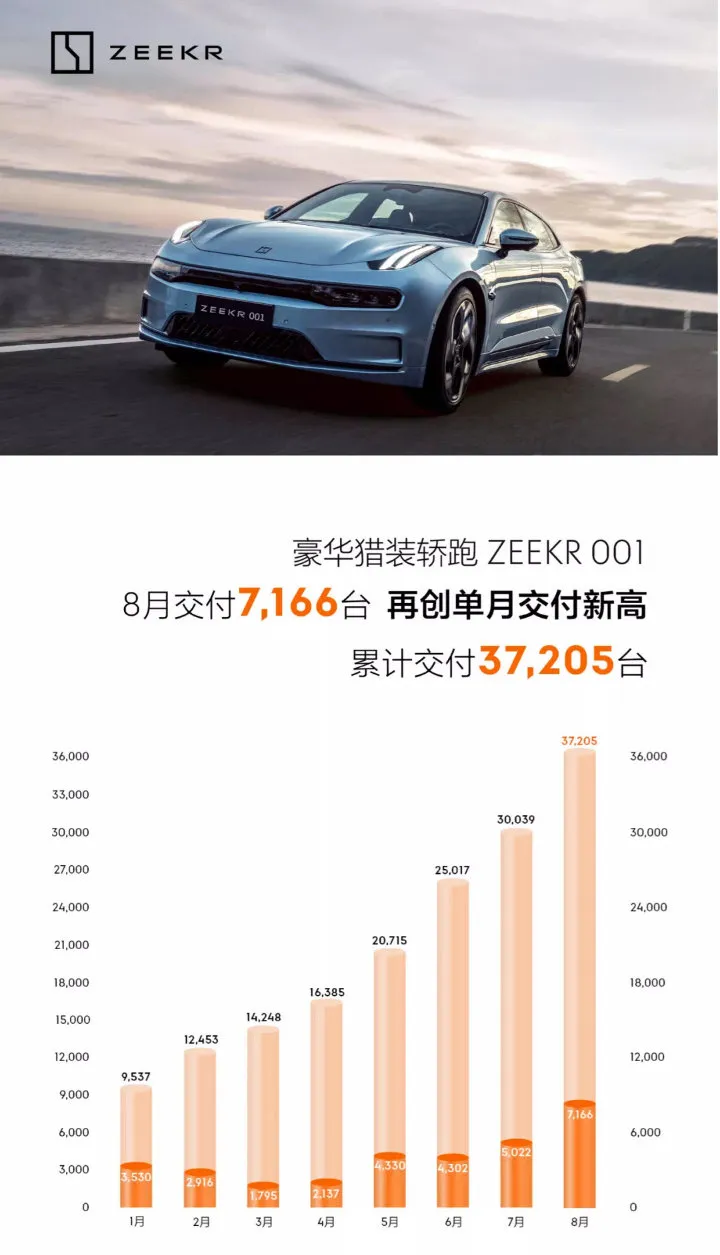极氪001的8月交付量为7166,终于解决了要命的供应问题,整个交付量有比较大的提升(5000——7000)。