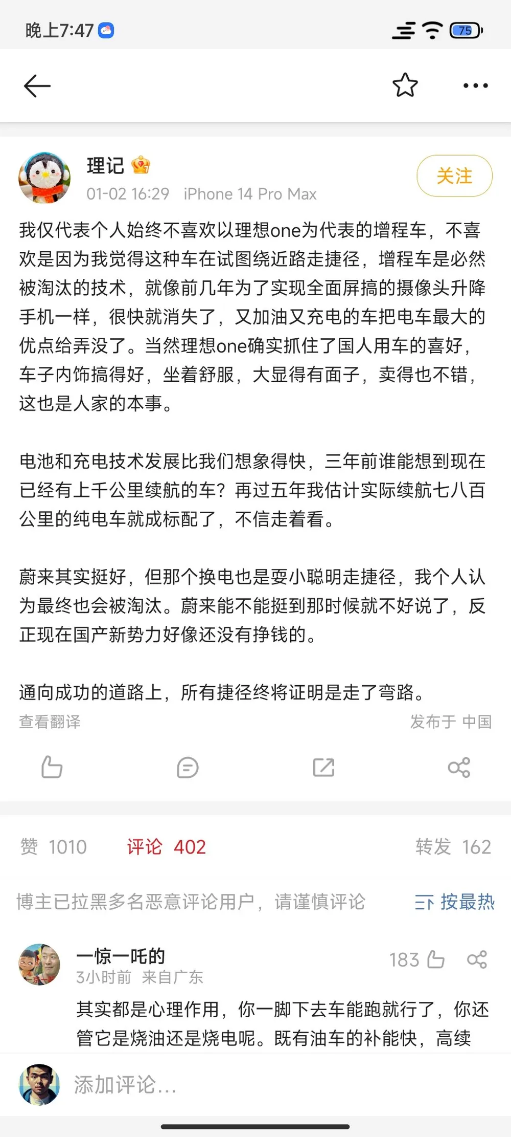增程个人认为并不是落后,只是在目前阶段一个非常折中的方案。