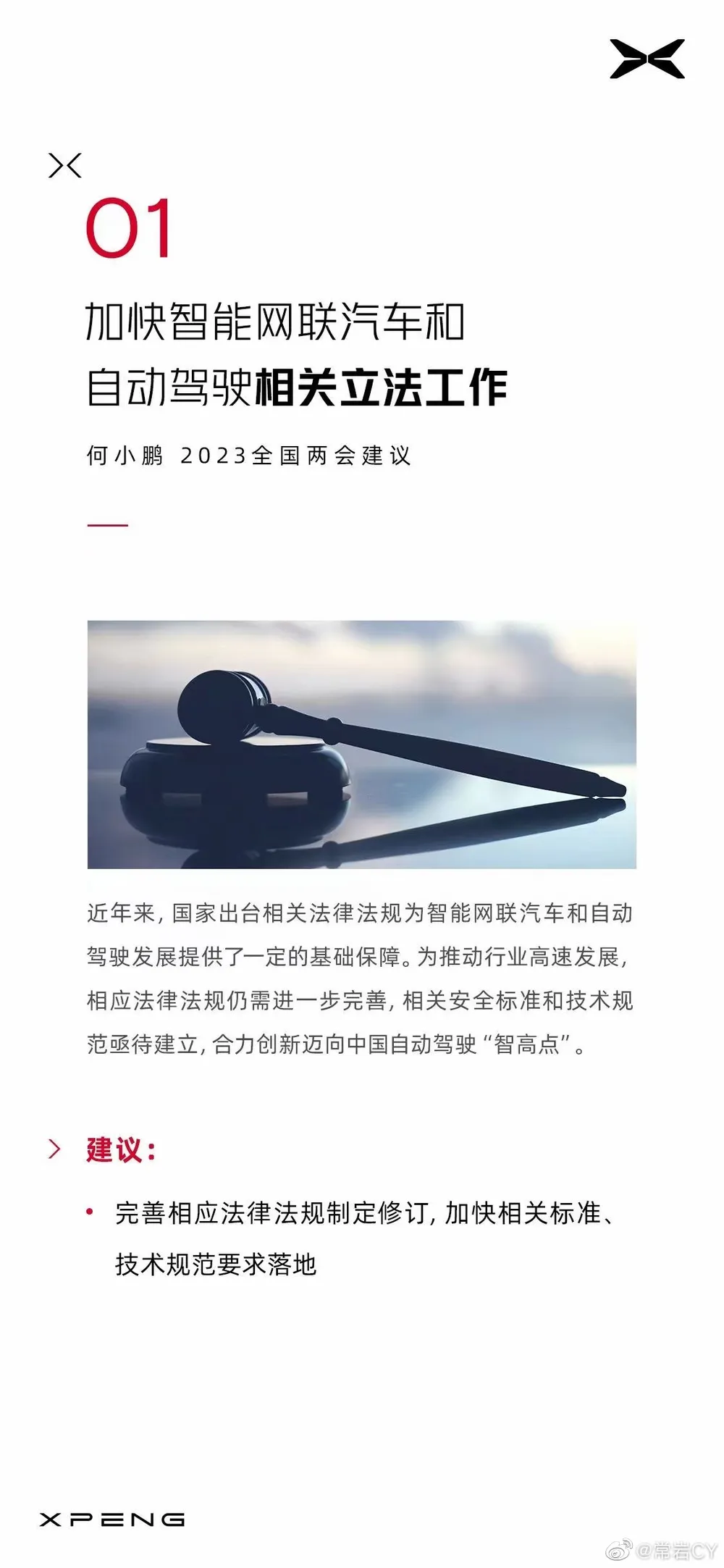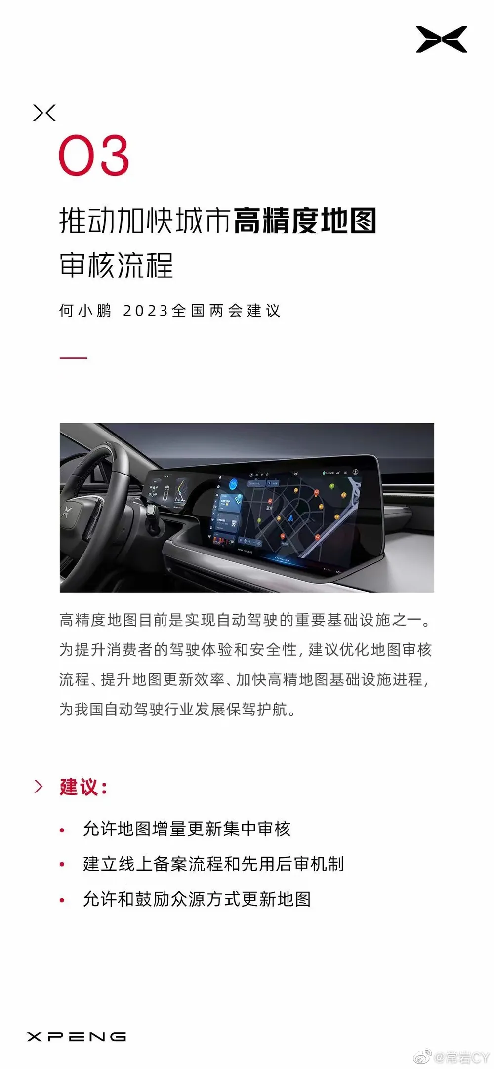 今年两会何小鹏提出了三项提案,看起来都和小鹏业务息息相关: 1,加快智能网联汽车和自动驾驶相关立法工作; 2,探索建立自动驾驶技术及自动驾驶汽车保险产品体系; 3,推动加快城市高精度地图审核流程。