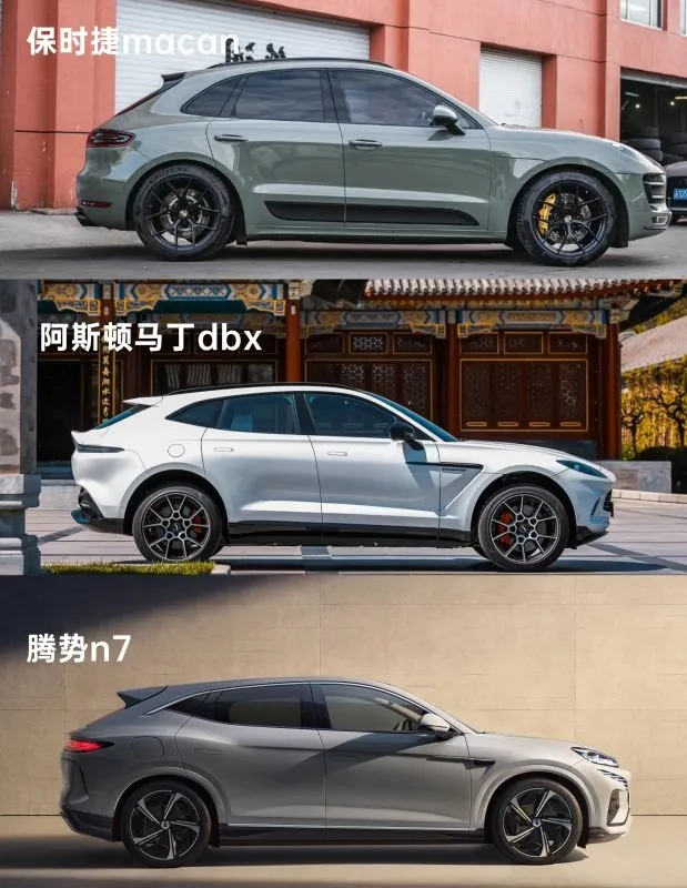 很多人看到腾势 N7 第一眼感觉与极氪 001有些像,其实它的侧面更像 Macan,网上看到张腾势 N7 和极氪 001 的对比图,分别是这两款车的不同角度。