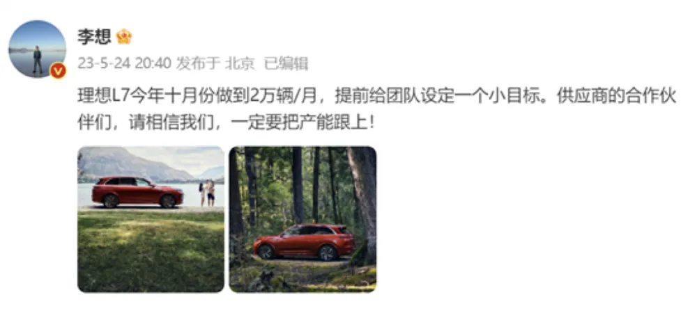 给友商上上强度,李想称10月理想L7做到每月2万辆 基本上可以肯定,李想就是个冲浪达人,友商有点风吹草动他就会马不停蹄的在网上造势。 昨天蔚来ES6前脚刚发布了售价,结果李想立马发了一个微博,大意就是“理想L7在今年10月份的月销量将达到2万”。这次李想的微博没有提蔚来新ES6,但是话里话外都在拿L7对比ES6。 到底能不能达到2万,现在不得而知,但是在ES6发布售价后来这么一出,很明显是在“讽刺”蔚来的销量低。 说实话,蔚来ES6如果出一个低配版,砍掉两片orin X,把摄像头像素放低一点,再把价格设置到33.8万,可能真的就完全不同,但蔚来为了自己一贯的口碑,是铁了心的走高价路线,不会说性价比之类的,真是可惜啊。 不过实话实说,增程的确成本要远低于纯电车型。尤其是蔚来纯电+换电的模式,成本居高不下,降价卖多点,很有可能还不如保持现在的定价保障一定的利润了。 不管蔚来理想怎么想,市场对他们也明确的投了票,表达了自己对这个价格的意见。就在昨天开盘的美股,理想低开高走涨超3%,反观发布新车的蔚来却是低开低走,跌幅超过10%,看来市场也觉得蔚来这个价格买贵了,大家觉得呢?