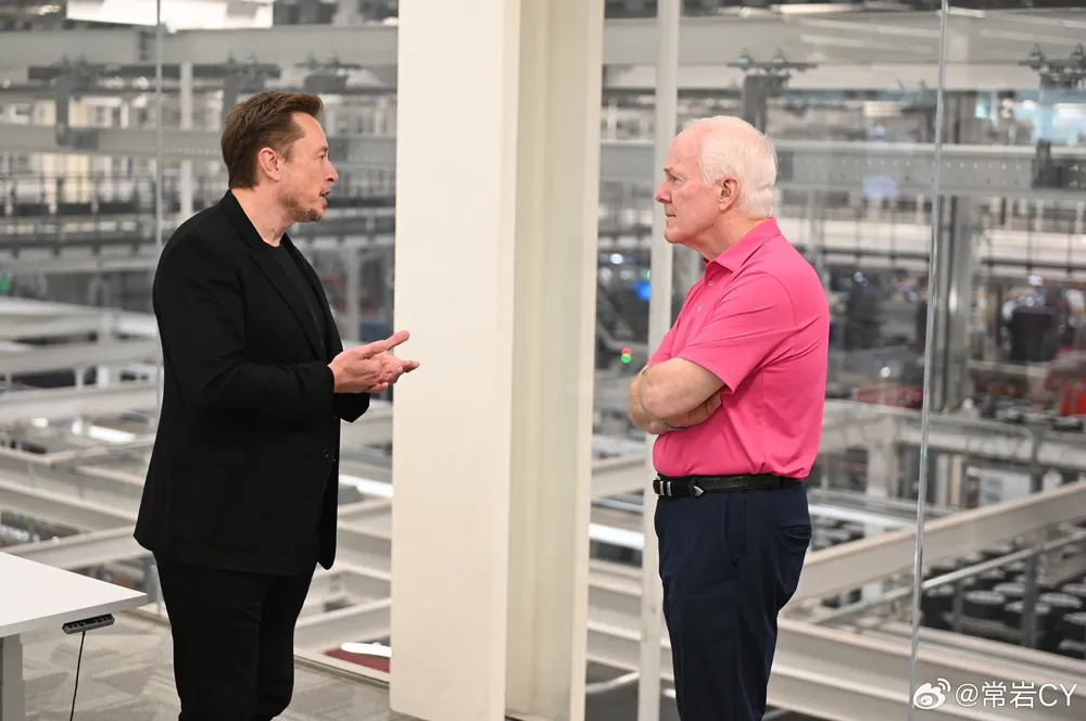 来自德克萨斯州的美国参议员约翰-科宁(John Cornyn)今天参观了位于德克萨斯州吉加的特斯拉工厂,并会见了马斯克。