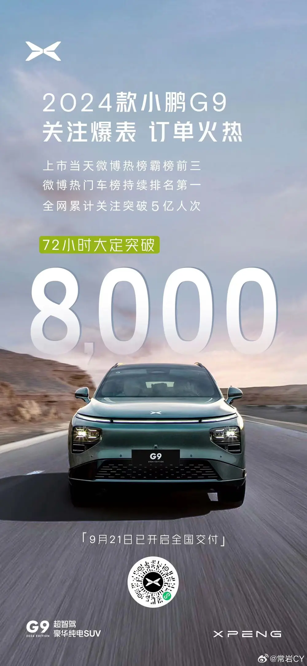 小鹏G9 72小时大定突破8000,G9 G6俩车要冲月交一万五?