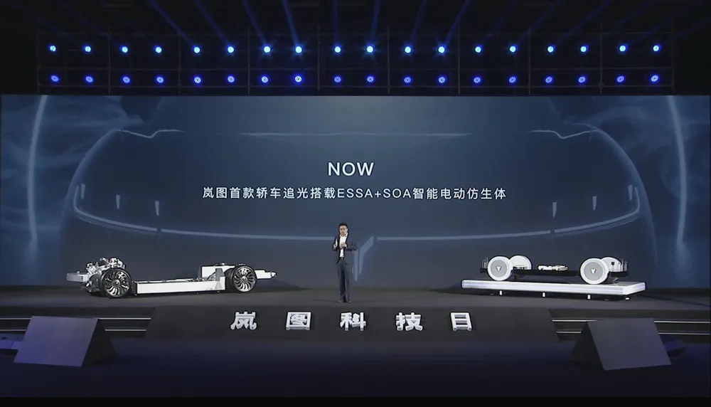 在岚图科技日上的一段阐述岚图 SOA 架构的视频里,出现了一款「岚图新车」的内饰。同时,岚图表示,追光将会是岚图首款搭载 ESSA 平台 + SOA 电子电气架构的轿车车型。