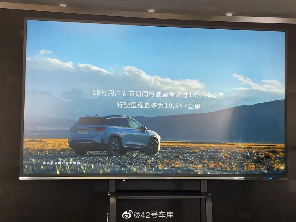 蔚来新春面对面秦力洪上台分享关于今年在 1 月 13 日到 2 月 5 日过年期间的数据,今年作为疫情以来最大规模的春运,蔚来当作了压力测试,同时也收获了一些成绩和心得。 NIO House 接待了 959,829 位用户,牛屋特饮共 14,271 杯,共计送出了 25,337 份礼物; 春节行驶里程方面,蔚来用户行驶总里程 384,447,121 (3.8亿)公里; 18 位用户春节期间行驶里程超过 10,000 公里; 行驶里程最多为19,557公里,力宏现场还说这里程都赶上厂家的测试了; 换电部分的数据比较重要,因为今年蔚来给所有车主提供了不限次数的高速免费换电,在 1 月 13 日到 2 月 5 日期间: 共提供 1,245,095 次换电服务、901,900 次充电服务; 199,768 次服务保障、13,723 次电池灵活升级。