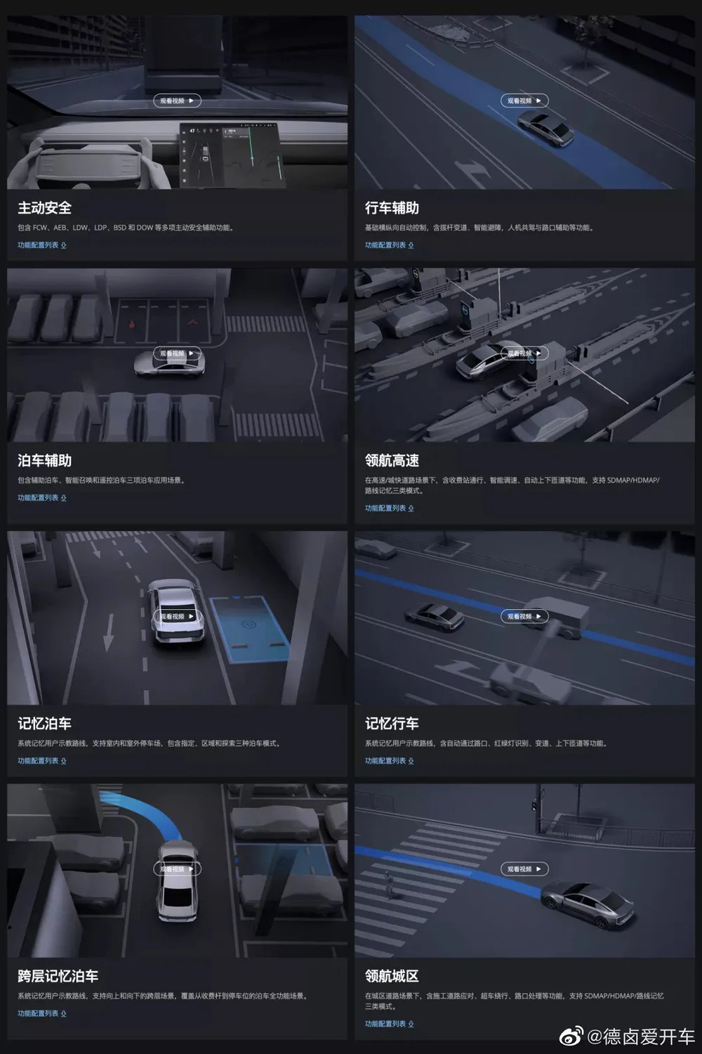 主动安全、行车辅助、泊车辅助、记忆泊车,