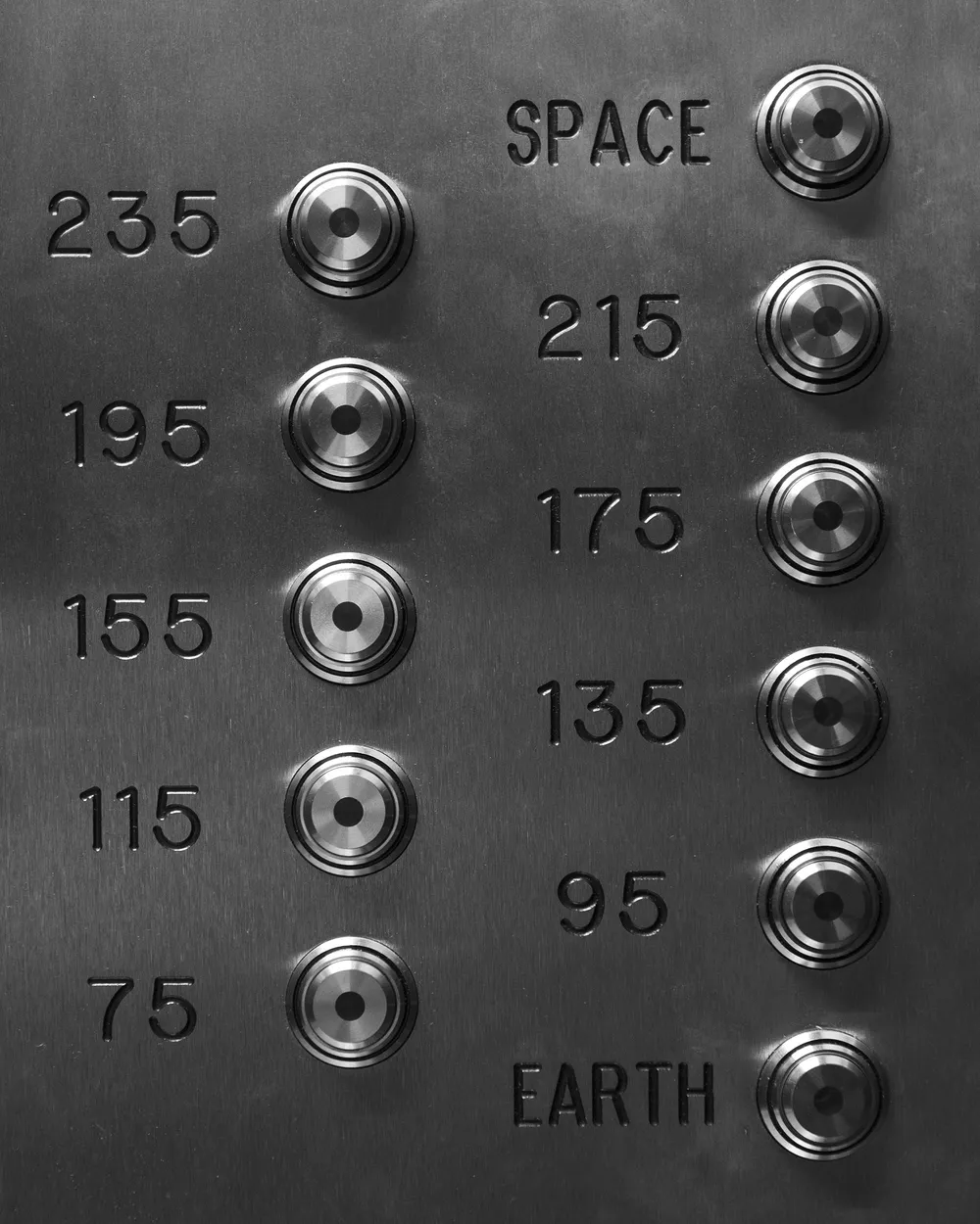 航天员坐右边的电梯上去,就能进入到猎鹰 9 号车头的龙飞船座舱里。 图二是电梯控制区特写,回地面按 EARTH,上去进龙飞船按 SPACE。 搞这种东西老马太会了。