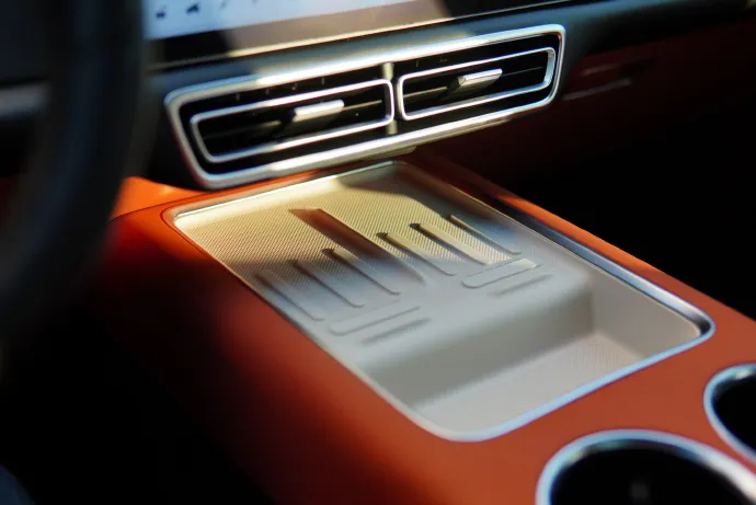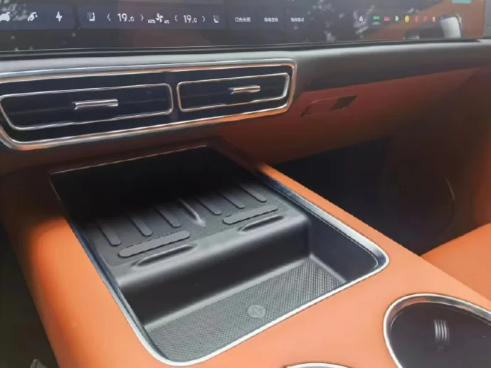 橙色内饰理想L9,分别配白色/黑色50W安卓无线充电面板的实车效果。哪个好看,白色扣1,黑色扣2。