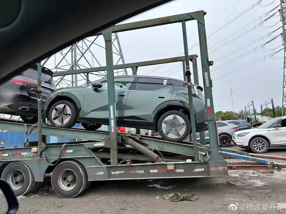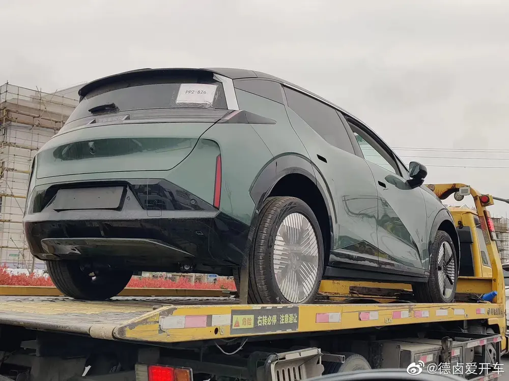 这台极氪 X 从后窗贴纸上看, 应该是 PP2 试生产阶段的车辆; 这一版试制车上出现了门把手开口, 另外充电口盖在这辆车上也体现了出来, 看起来这应该不是最终量产交付的版本吧。
