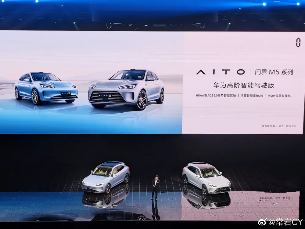AITO问界M5系列华为高阶智能驾驶版正式发布。 -HUAWEI ADS 2.0高阶智能驾驶 -鸿蒙智能座舱3.0 -全新20英寸运动轮毅,双五辐轻量化设计 -标志性红色卡钳 -纯电续航255km -综合续航1425km -相比非智驾版本续航增长14.7% -风阻相比非智驾版本下降了11%