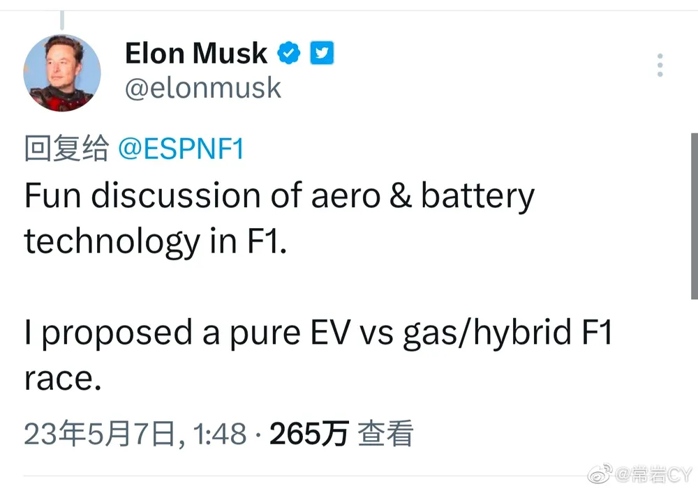马斯克想拿纯电动挑战F1了?