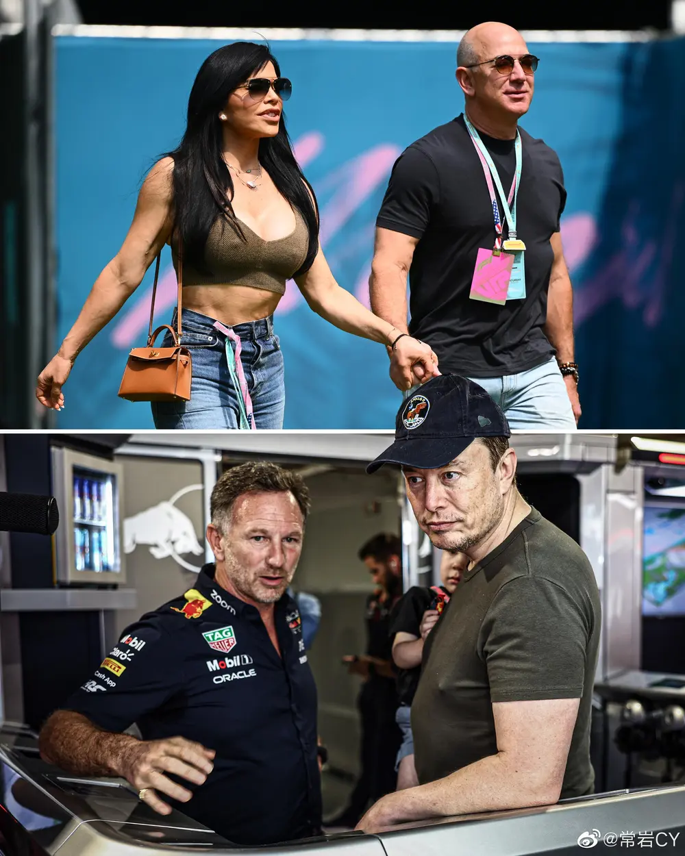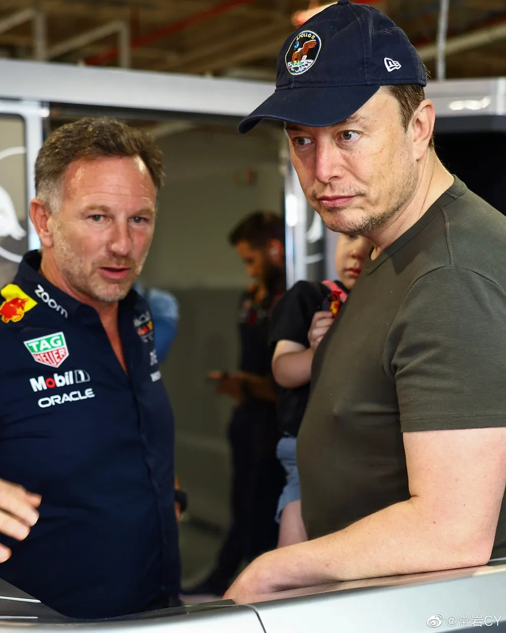 迈阿密大奖赛上,红牛车队晒出了一张马斯克到访参观的图。