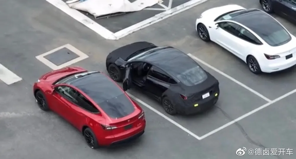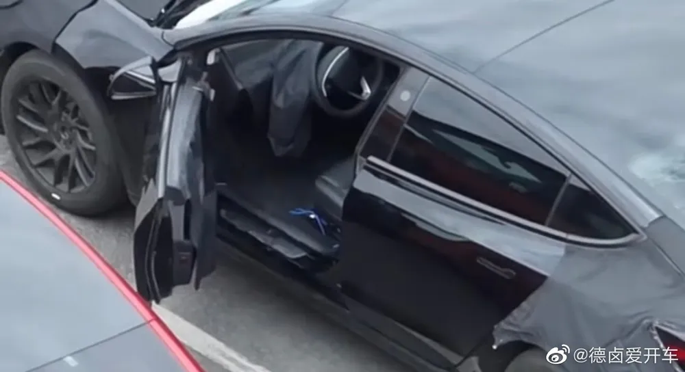 Model 3 | Highland 测试车的方向盘被拍到了, 造型类似目前 Model S/X 的圆形标准方向盘, 改款车型采用无档杆方案的可能性很大。