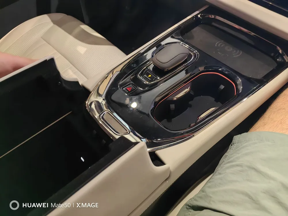 4、杯座与档把,杯座有氛围灯,还是很高级的,但是档把我真的无语,这个档把手感很好吗?让我想到了苹果鼠标的感觉